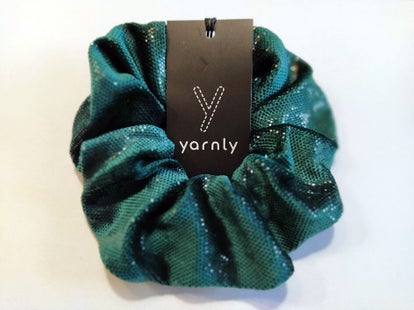 Maak zelf deze scrunchie van luxe velourse, groene stof met glinstering.