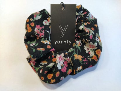 Maak je eigen scrunchie van 100% viscose in zwart/gekleurde bloemen print.