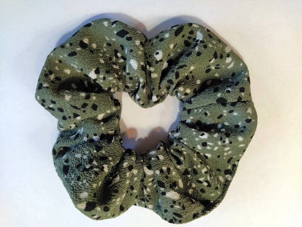 Maak je eigen Scrunchie van 100% viscose in olijfgroen met stippenprint.